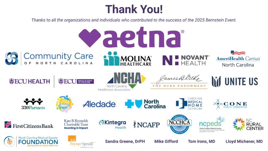 The 2025 Bernstein Event was a testament to the power of collaboration, resilience, and vision. As we embark on a new chapter under Dr. Keever’s leadership, the values and legacy of Jim Bernstein remain at the heart of our mission: advancing collaborative, community-driven solutions to improve whole-person health for everyone, everywhere in North Carolina. We hope you will join us on the journey to a healthier North Carolina!